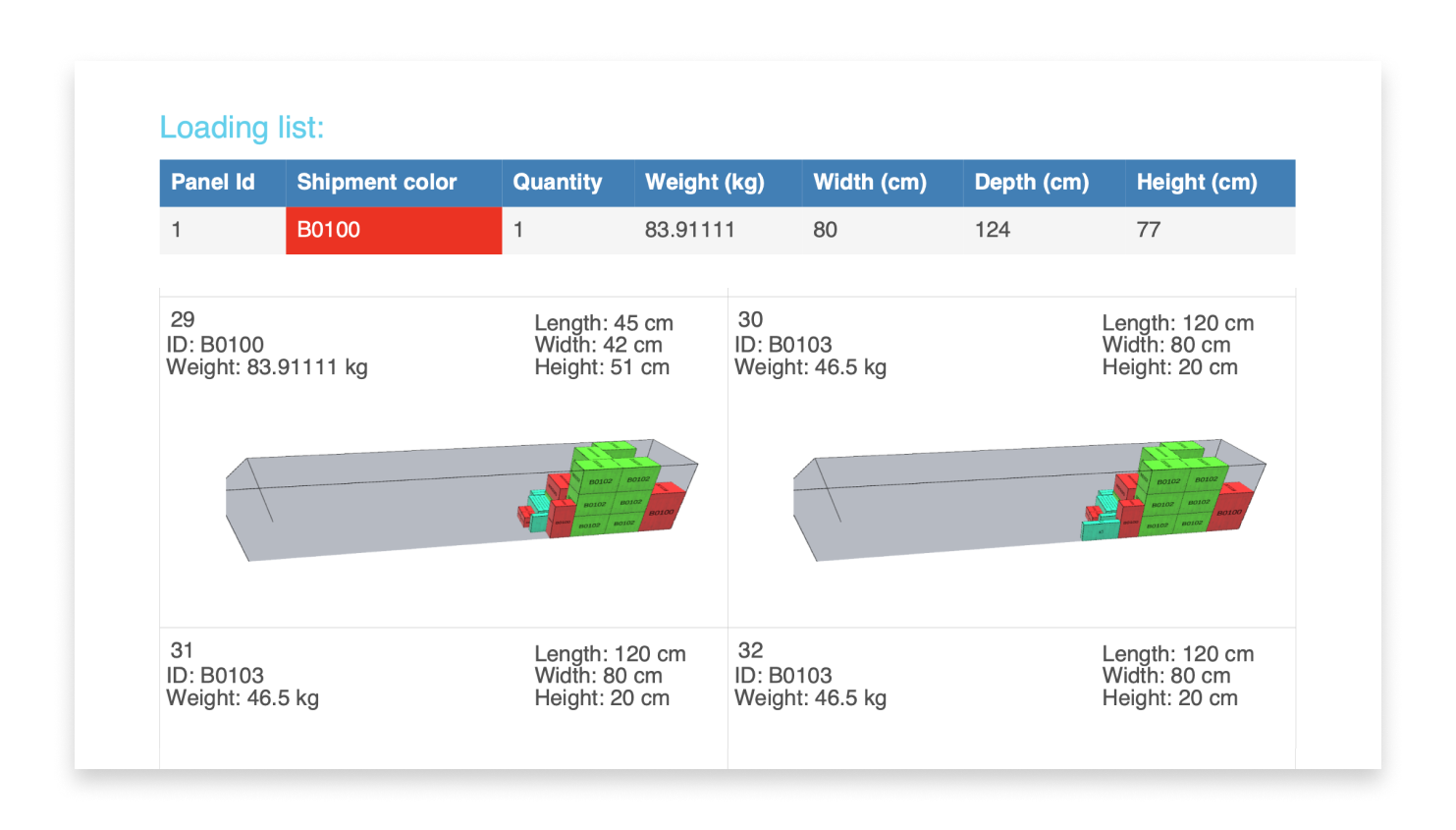 When you are happy with your loading plan, you can generate and print it.
